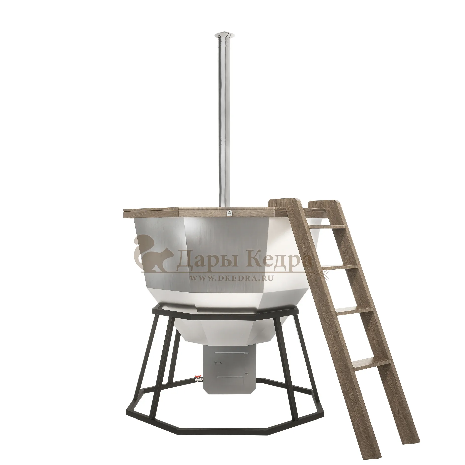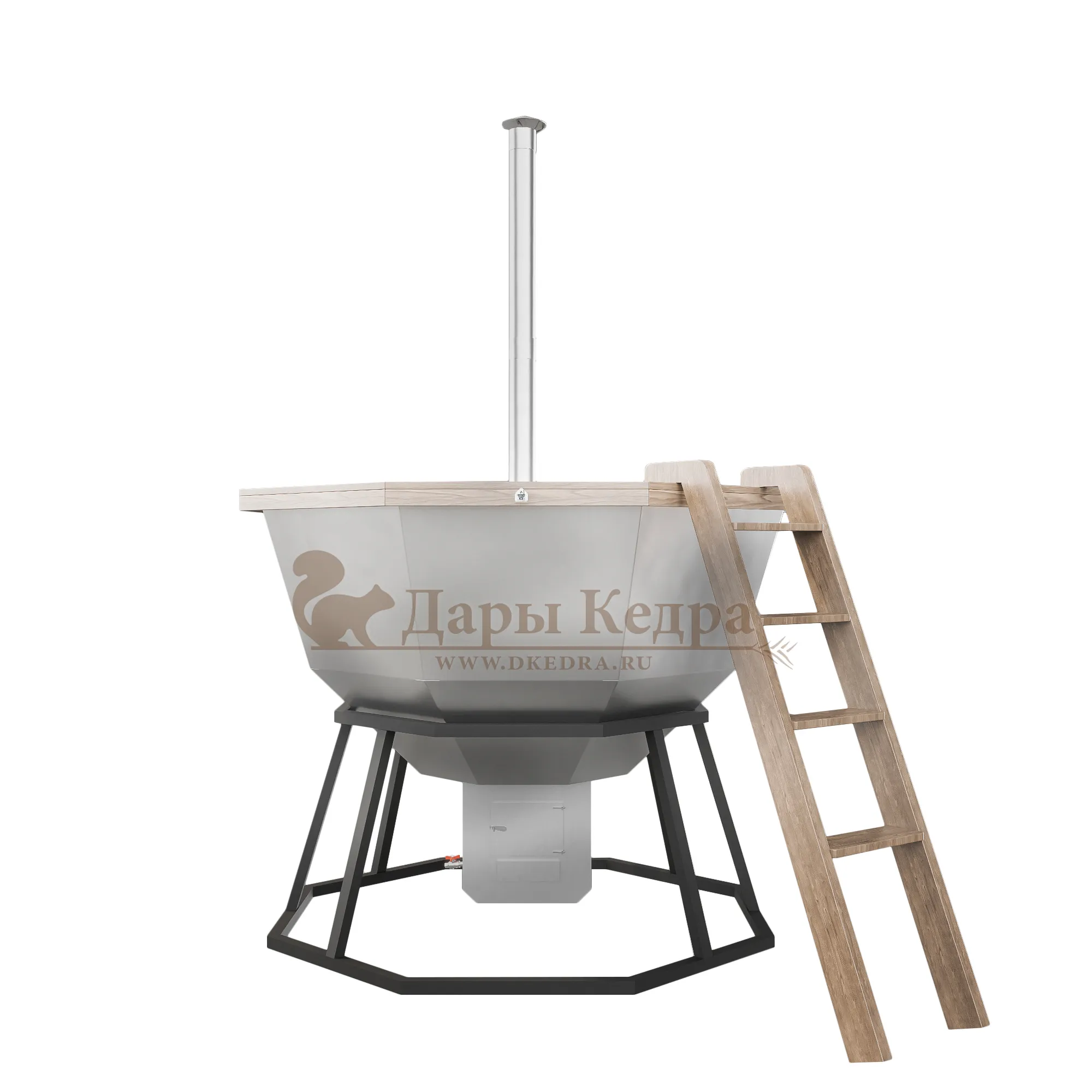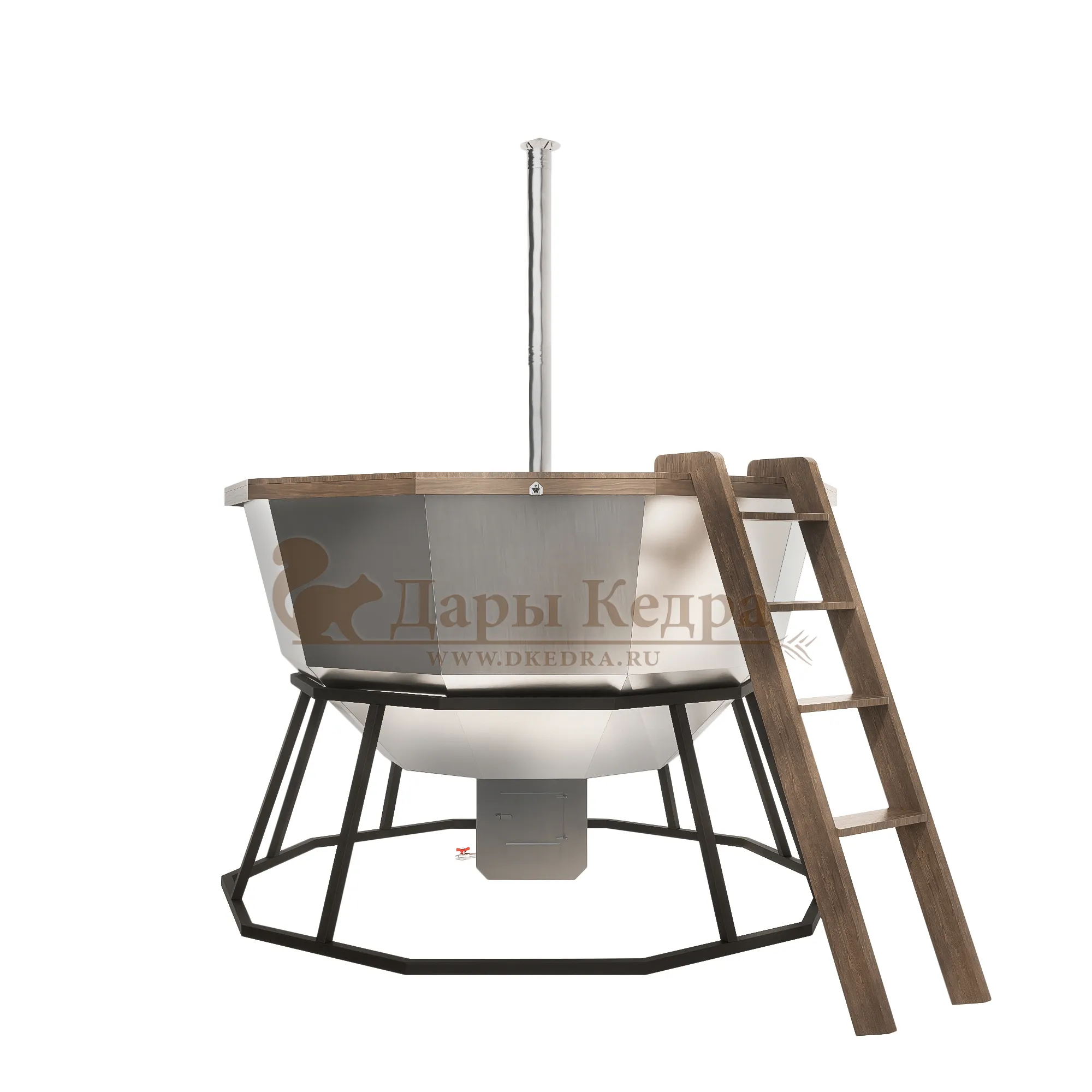 Конструкция устанавливается на прочную подставку, обеспечивающую устойчивость. Для удобства предусмотрена лестница, ведущая внутрь чана. Внутри оборудованы удобные сиденья, позволяющие комфортно расположиться. В зависимости от модели, вместимость составляет от 5 до 10 человек — отличный вариант для семьи или компании.