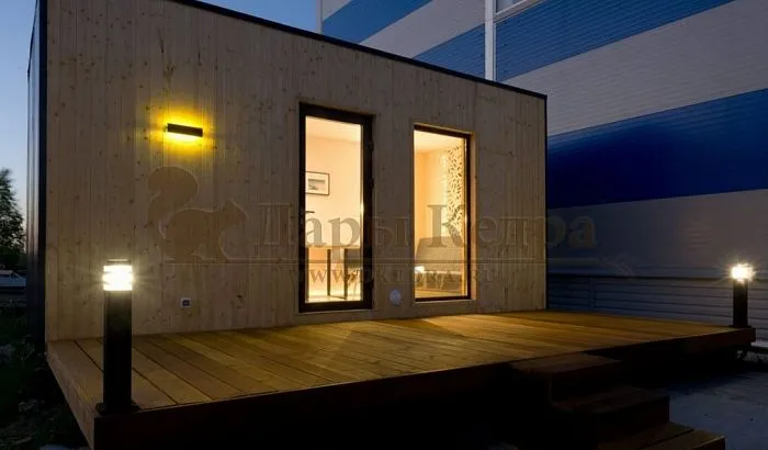 Разобравшись с понятием и философией датского слова «hygge», остановимся подробнее на материалах, из чего строится такой дом, на мебели, освещении, аксессуарах. Тёплый кемпинг от компании Дары Кедра может быть изготовлен как по готовым проектам, так и индивидуально по предоставленным размерам. Современные материалы, используемые при проектировании отличаются экологичностью, прочностью, за счет чего строение обладает длительной эксплуатацией до 50 лет. Теплоизоляция стен, пола, потолка выполнена с помощью минеральной ваты, экологичной, устойчивой к поражениям насекомых. Для исключения воздействия неблагоприятных факторов внешней среды снаружи используются гидро- , ветрозащитные пленки. Финишным укрывным материалом стен является гибкая фасадная черепица, имитирующая кирпич.