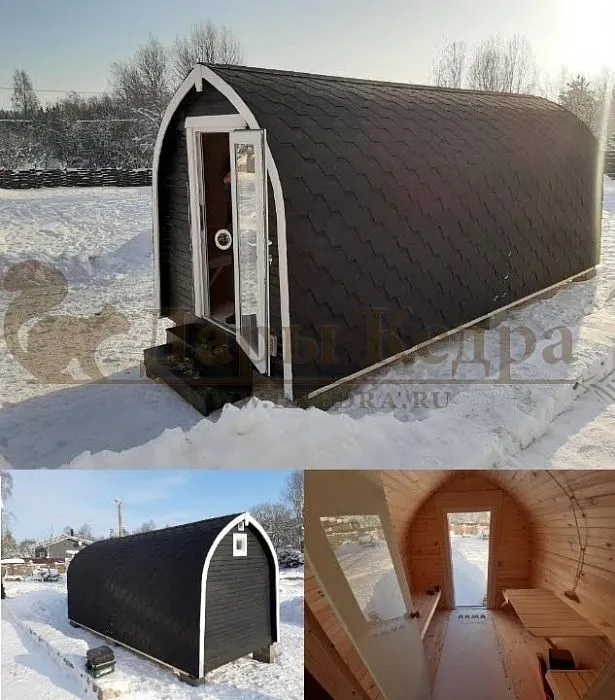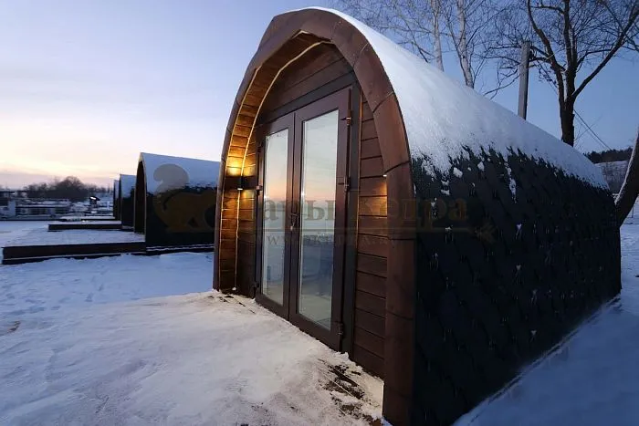 Теплый кемпинг-дом с сауной от «Дары Кедра» готов к использованию за 1 день. Доставка, установка и ввод в эксплуатацию — всё включено!